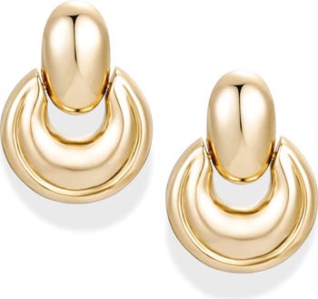 Bold and vintage inspired, these shiny door knocker earrings are a fresh nod to a classic silhouette.