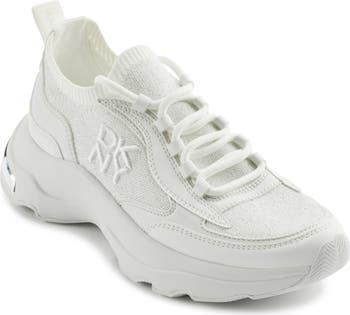 Metallic knit and hits lend flashy style to a supersporty sneaker built on a cushioned insole and chunky sole for enhanced comfort.