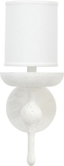 With its hand-forged look, this sconce adds texture and a touch of old-world ambiance to any room. The sculptural silhouette is made of plaster and topped with a linen shade for an approachable aesthetic.