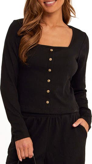 Faux buttons dot the front of this top cut from a textured organic-cotton-enriched jersey for a look that's equal parts polished and comfortable.