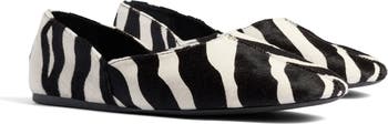 Zebra-inspired stripes slant across the richly textured calf hair of a signature ballet flat designed in a cleanly seamed silhouette.