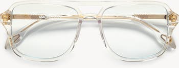 A new take on aviator frames in a bold, oversized shape, handmade from Italian acetate. Fitted with blue light filtering lenses for the highest level of protection.