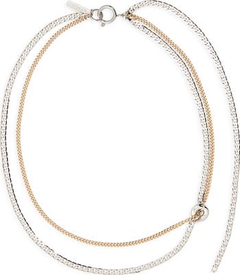 Combining androgynous style with an edgy French aesthetic and a touch of punk/'90s nostalgia, this handcrafted necklace features mixed-metal anchor-link chains that meet at O-ring hardware.