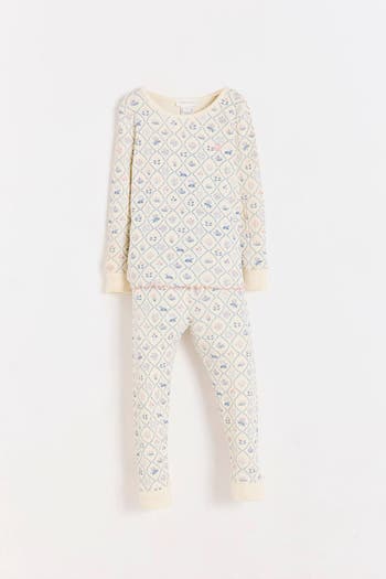 Cotton Rib long pajama set. Long sleeve top ant printed pants.
