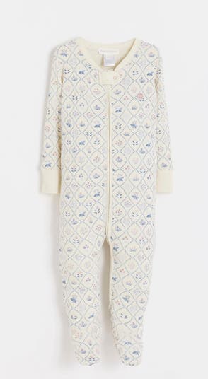 Snug-fit Morley rib cotton footed pajama with lons sleeves and a full-front closure from neck to toe.