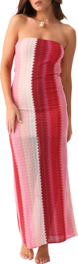 Subtly sparkly and enhanced by cotton, this strapless maxi dress is perfect for poolside chats and shoreline strolls.