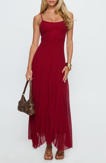 Pleats at the skirt create a flowy, fabulous silhouette on this glitter-kissed maxi hung from adjustable shoulder straps.