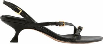 The Janel Slingback is the perfect mid-heel sandal. Each of the three straps has a working buckle to achieve just the right fit for every foot. The asymmetric pointed toe complements the overall minimal, modern look of the style. The 55mm / 2.2 inch angled comma heel completes the look and provides all-day wearability. Check out the neutral bone or gold options in soft Italian nappa leather or the python print black & white calf.