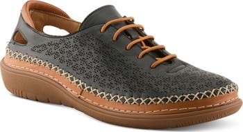 Intricate laser-cut leather textures this casual sneaker finished with contrast stitching and set on cushioned sole for lasting comfort.