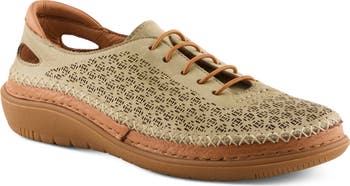 Intricate laser-cut leather textures this casual sneaker finished with contrast stitching and set on cushioned sole for lasting comfort.