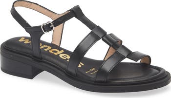 Thin, asymmetric leather straps bring modern style to this low block-heel sandal set on a sole with EvoLight technology that guarantees lightness and flexibility. Plus, the MemoryGel® footbed provides cushioned support and shock-absorbing comfort to help prevent foot fatigue.