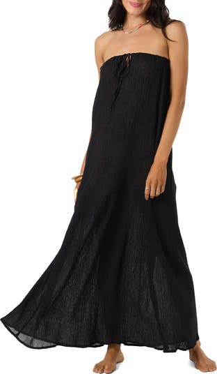 Go from beach to sunset cocktail hour in a cover-up dress cut in a strapless silhouette to show off your fresh tan lines.