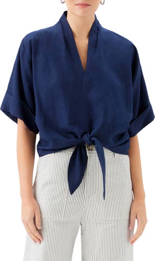Janice Cuffed Tie Hem Linen Blend Top