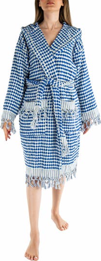 Experience luxury, comfort, and sustainability with the Janice Handwoven Bubble Bathrobe by Forever & Always Handmade. | Made from 100% organic cotton and woven on a traditional hand loom (chickpea weaving), this robe is ultra-soft, breathable, and quick-drying. | Designed for unisex use, it features a cozy hood, two spacious pockets, and a tie belt for a perfect fit. | Whether you're lounging at home, relaxing by the pool, visiting the spa, or enjoying a hammam experience, this bathrobe offers exceptional comfort and absorbency. | S / M: | Dimensions: | Length: 40"" (105 cm) | Width: 23.5"" (60 cm) | Arm Length: 15.5"" (40 cm) | Arm Width: 9"" (22 cm) L / XL: | Dimensions: | Length: 40"" (105 cm) | Width: 26"" (66 cm) | Arm Length: 15.5"" (40 cm) | Arm Width: 9"" (22 cm)