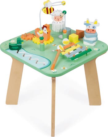 This activity table with a wire strung with beads amongst a duck maze, building blocks and a metal xylophone will help develop your child's fine motor skills.