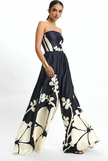 These high-waisted wide-leg pants are designed to flatter every figure, featuring a lightly elasticized waistband for a comfortable, tailored fit. With deep side pockets for added functionality, they’re a versatile wardrobe essential. The Ula print draws from coastal hibiscus and Hawaiian island flora while merging mathematical concepts with geometric forms that blossom organically, symbolizing resilience and calm.