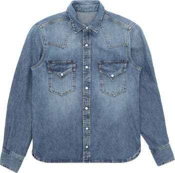 The Women's Western Denim Shirt is a timeless piece crafted from premium Japan denim. A slim fit design with front and back yokes, it features two flap pockets and snap closures with turquoise stone detailing. Made in Italy by Fortela , this 100% cotton shirt offers both style and durability. Perfect for those who appreciate quality craftsmanship and classic design.