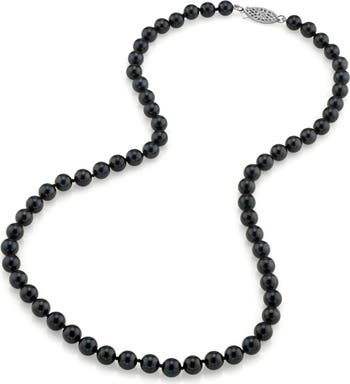 - AAA-quality 6.0–6.5mm round black Japanese Akoya cultured pearls