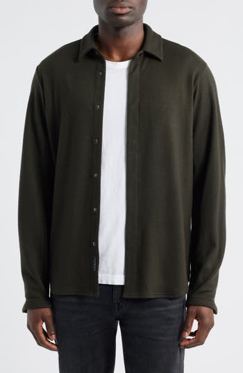 Crafted from smooth, lightweight Japanese wool with a concealed snap placket, this relaxed fit shirt retains urban style appeal with a structured silhouette and wearable versatility.
