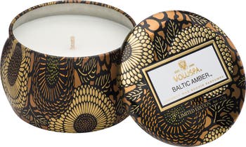 Fragrance story: Baltic Amber blends notes of amber resin, sandalwood, cedar and vanilla bloom to warm your heart and home. Voluspa candles are hand-poured in the United States from sustainable, ecologically sound, pesticide-free manufacturing. The candle features a proprietary coconut wax blend and a 100% cotton wick.