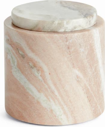 Honed to a semi-matte finish, this stunning marble is specifically known for its unique dark brown to light brown broad lines. The clay minerals found in this particular marble are what gives our round lidded box this one-of-a-kind brown veining. A beautiful accent atop home office desk, bookshelf or entry console.