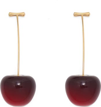 Sweeten your day with these sleek bar-drop earrings suspending luminous cherry-shaped drops for whimsical shine.