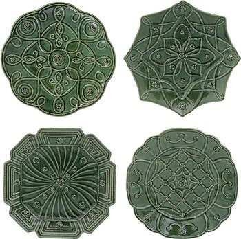 The brand's iconic berries and threads motifs bring rich detail to these verdant green plates that pay homage to four of the world's most beautiful gardens: Landriana in Italy, Villandry in France, Alcazar in Spain and Heligan in England.