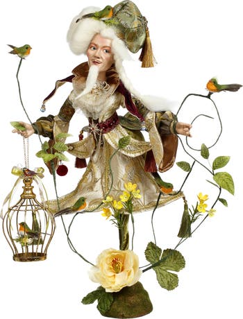 The Mark Roberts Jardin de Aviary 26" figurine is an exquisite collectible that blends whimsical elegance with fine artisan detail. Dressed in luxurious fabrics and textures, the figure is surrounded by delicate florals and charming birds, evoking the romance of a European garden aviary. Standing an impressive 26 inches tall, it makes a striking statement piece for collectors and refined seasonal décor displays.
