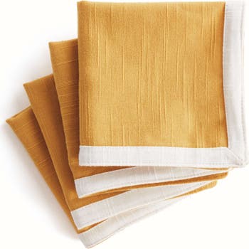 Bring a touch of softness to the table with this set of four 100% woven cotton napkins. Beautiful in tone and texture, the white & ochre combination is made to coordinate with any tablescape.