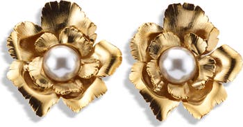 Bring gasp-worthy glamour to your statement-making look with these luminous drop earrings boasting bold tiers of gold-plated petals with Swarovski-crystal pearl centers.