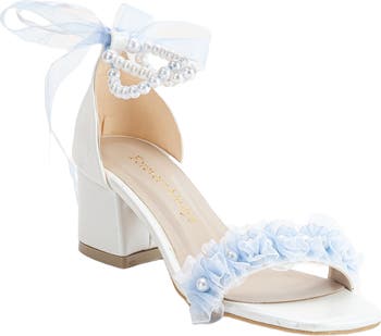Introducing Jasmine ivory lace sandals from Forever & Always Shoes are perfect for any bride. With a low heel height of 2.1 inches (5.5 cm), they offer both style and comfort. These wedding sandals feature a front strap adorned with lace and pearls and a pearl ankle strap that adds a touch of elegance to your bridal look. Crafted with care from faux leather and lace, these bridal sandals are designed to make you feel comfortable and confident on your special day. The block heel provides stability while still being a low heel, making it easy to wear and dance in all night long. The ivory baby blue color is timeless and classic, ensuring these wedding shoes will match any wedding dress.