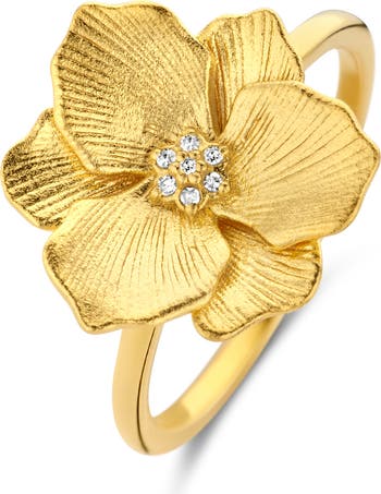 The Jasmine Flower Ring from DPT Antwerp features a finely engraved bloom with a brilliant diamond at its center. With its rustic brushed finish in Sterling silver, it offers a touch of springtime joy all year round.