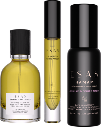 - Jasmine & White Amber is a sensual and luxurious fragrance that invites you to embrace your feminine side. The rich, floral sweetness of jasmine absolute and creamy tuberose is beautifully balanced by the bright, juicy burst of mandarin. Orris root and tonka bean add a soft, powdery depth, while hints of vanilla and tiare gardenia enhance the fragrance’s warm, intoxicating allure. Grounded by the woody richness of cedarwood and the smooth, comforting presence of white amber, this scent envelops you in a seductive, radiant warmth that lingers with elegance and sophistication.