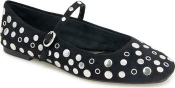 An adjustable mary jane straps offers retro appeal and a secure fit in a leather flat grounded by a cushioned footbed for comfortable wear.