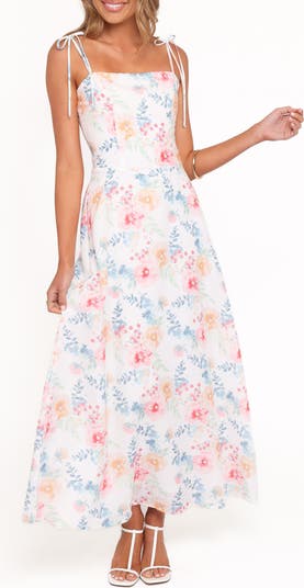 A fit-and-flare silhouette puts your curves on display in a romantic dress complete with a corset-inspired tie and blooming print.