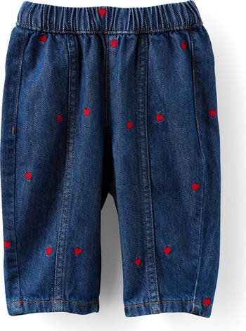 Easy, comfy and made for everyday play. These barrel-leg denim jeans come in classic cotton with an elastic waistband, so they pull on in seconds and feel good all day.