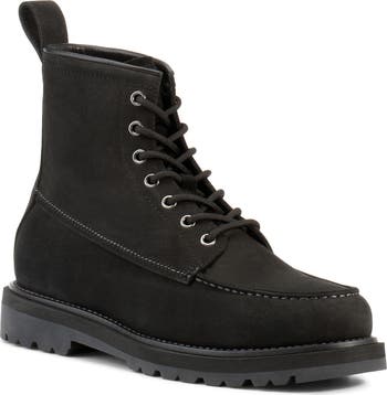 This lace-up boot gives a subtle nod to workwear design with rugged details such as a contrast-stitched moc toe and lug sole.