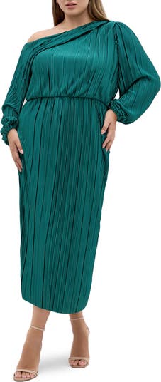 Impeccable pleats and an asymmetric neckline dial up the contemporary sophistication of this stunning long-sleeve midi dress.