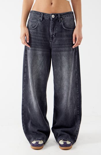 Look effortlessly cool and laid-back in these baggy, vintage-inspired jeans cut from nonstretch denim in a lived-in black wash.