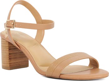 - Adjustable ankle strap with buckle closure; hidden elastic inset