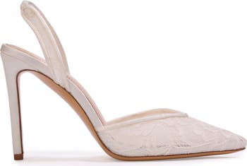 Pointy toe slingback pump, set on a pin stiletto heel.