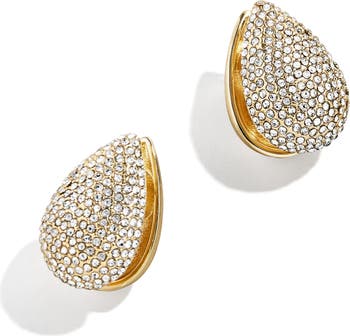 These modern drop earrings shaped like delicate teardrops bring eye-catching shine to your look with their crystal pavé and golden finish.