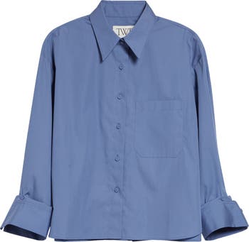 Dropped shoulders enhance the relaxed, boxy fit of this crisp poplin shirt.