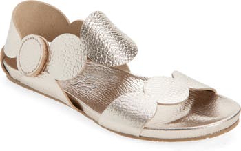 Supple leather shapes the geometric straps of this metallic sandal ready to shine on sunny days.