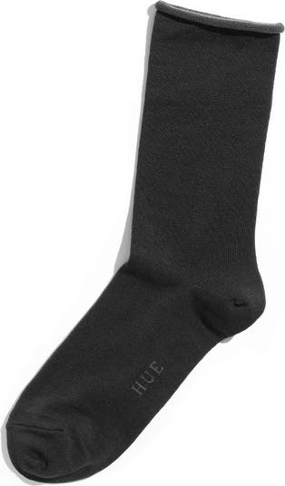 A rolled edge tops comfy heathered socks.