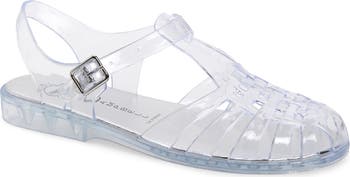 Take a nostalgic walk down the boardwalk or beach in this woven-strap jelly sandal that comes in a delectable array of colors.