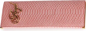 Angel or not, you can play the role with this slim, rectangular leather clutch punctuated with polished script hardware.