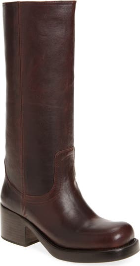 A stacked platform and chunky heel bring walkable height to a streamlined boot featuring a square toe and easy pull-on design.