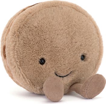 Here's your favorite sweet tooth's free pass to play with their food—a snuggly-soft macaron plushie garnished with a stitched smile and corded boots.