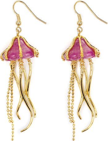 Add a splash of colour with these fun and flirty jellyfish earrings made using a bespoke resin stone with free-moving 18ct gold plated tentacles, suspended from an elegant fish hook.